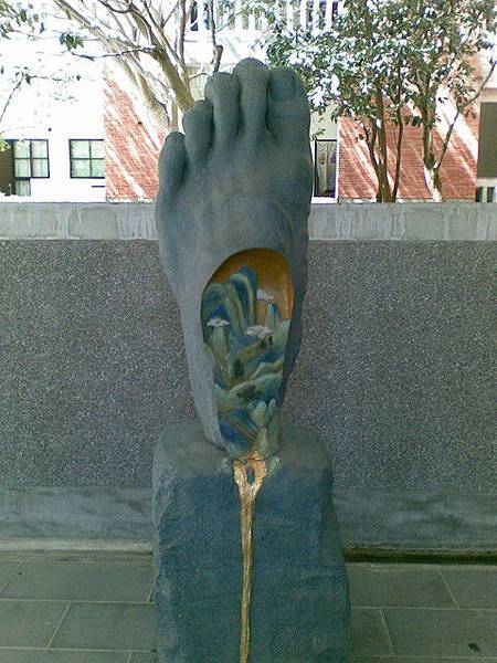 這是校園內隨處可見的裝置藝術,腳背那是山水,瀑布順勢流到下面來了