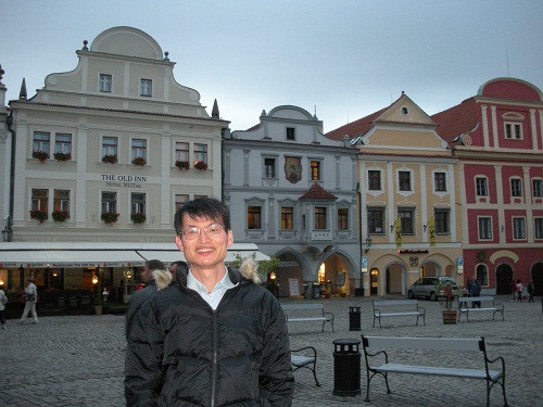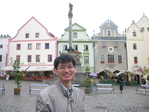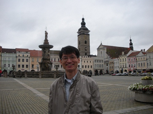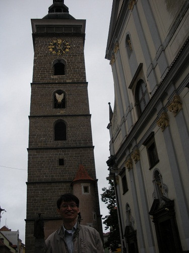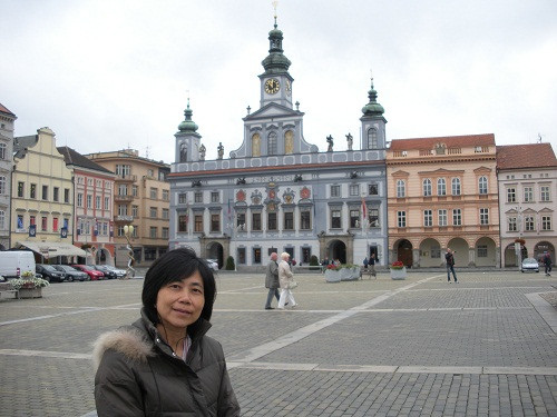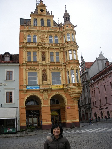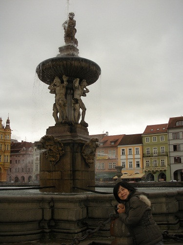 庫倫洛夫廣場-文藝復興式的建築,我頭上的柱子是黑死病紀念柱,