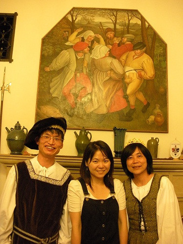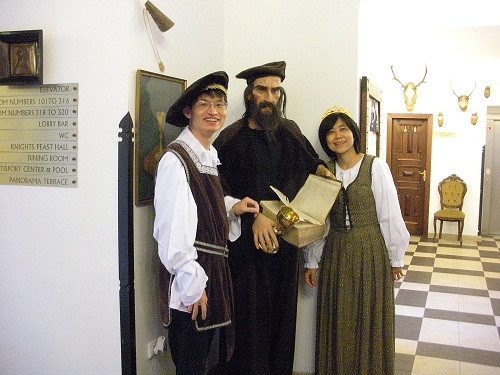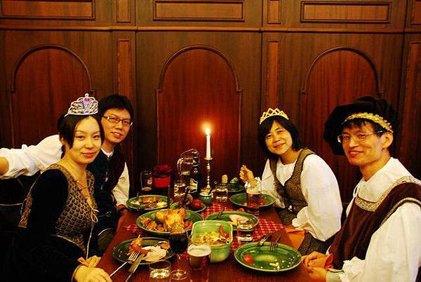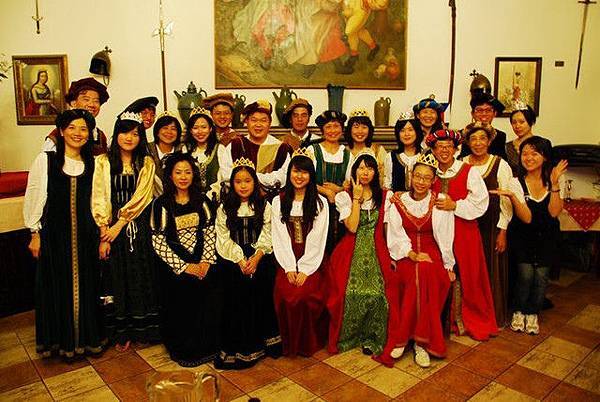 晚餐前我們換裝成捷克的傳統服裝,準備在地窖用餐,看起來還蠻好笑的