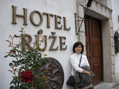 庫倫洛夫巴士不能進入,我們轉乘小巴士進去,今天住舊城的咽喉──玫瑰飯店