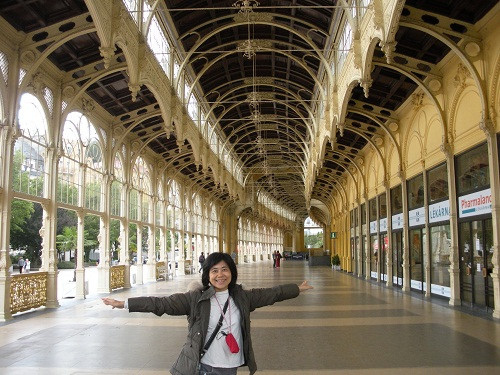 卡洛維瓦利的溫泉迴廊,右邊的迴廊有各種不同療效的溫泉出口