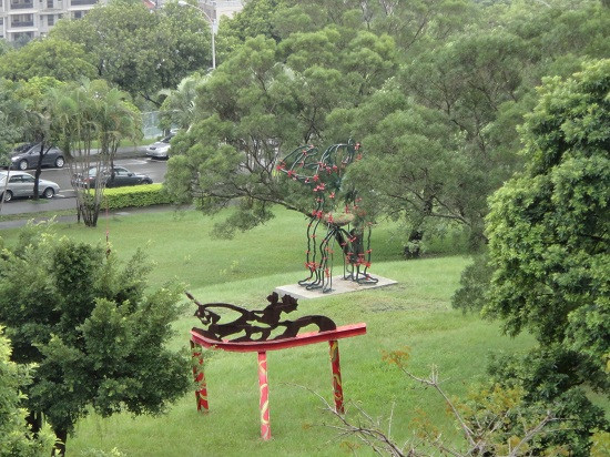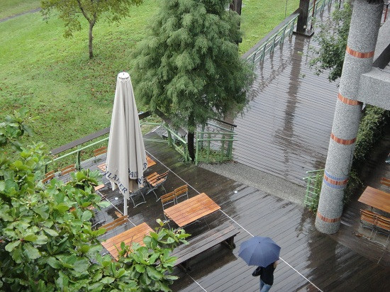 有點可惜的是遇上颱風天,美麗的校園及許多戶外的裝置藝術都看不到了 > < 連淡水河都很模糊了。