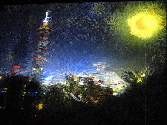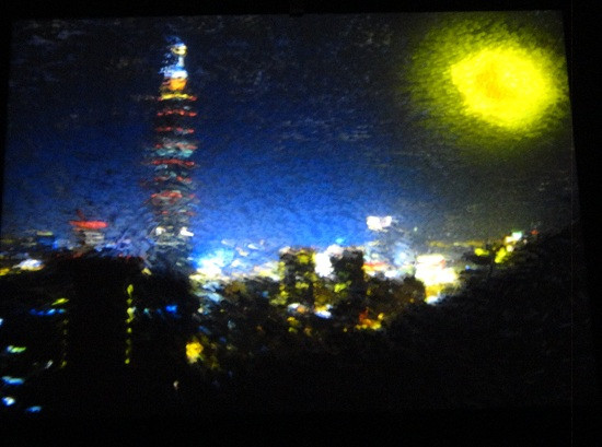 這幅「101大樓的星空」是在藝術與科技中心展出的,靈感來自梵谷的「星空」